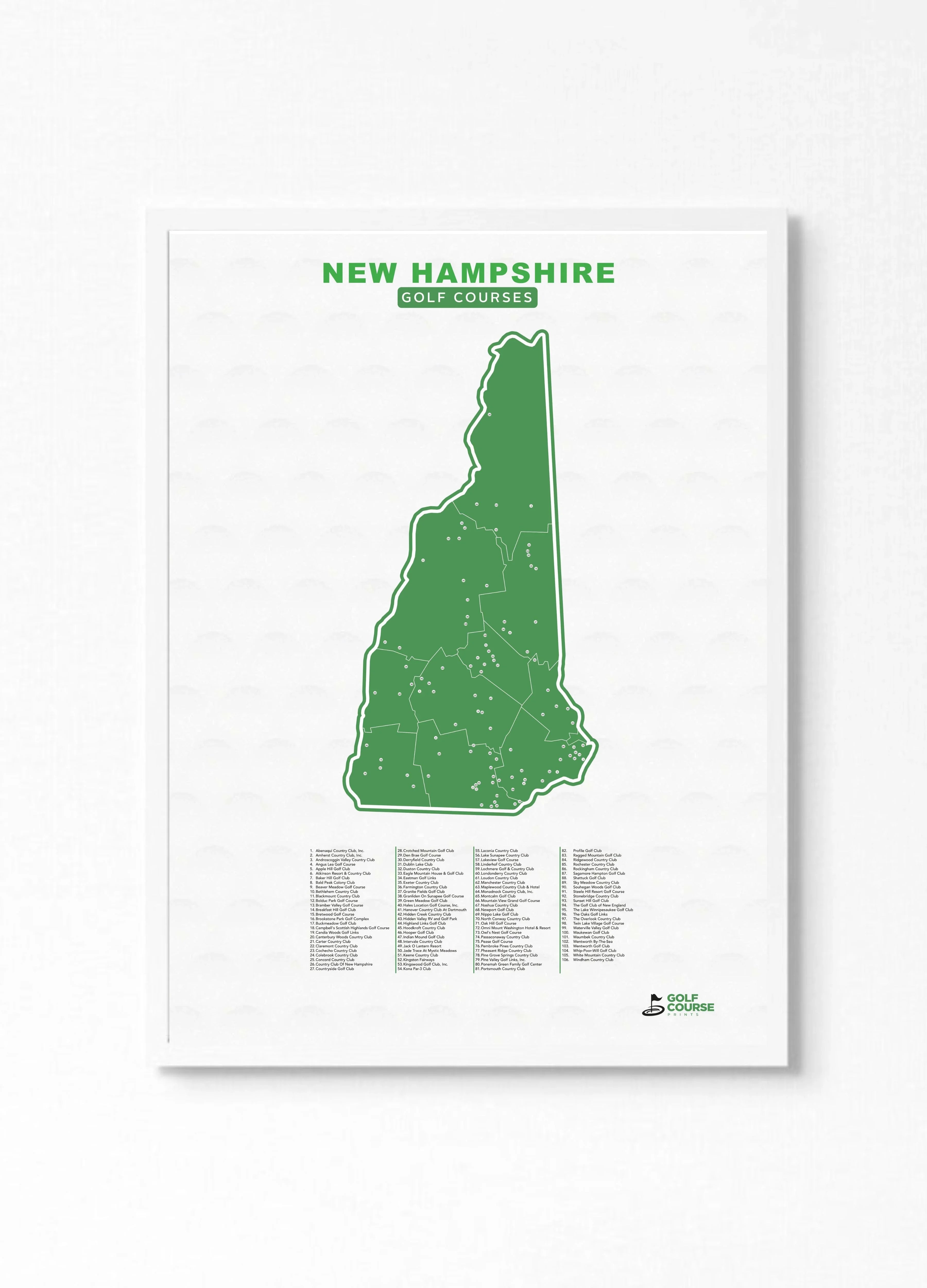New Hampshire Golf Course Map | Golf Course Prints Canvas 16×20